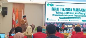 Humas IAIN Sorong – Institut Agama Islam Negeri (IAIN) Sorong menyelenggarakan Rapat Tinjauan Manajemen (RTM) dengan tema “Refleksi, Akselerasi, dan Sinergi Mewujudkan Mutu Perguruan Tinggi yang Unggul” bertempat di Ruang Mega Meeting Ballroom Hotel ACC Aimas, diikuti oleh pimpinan institusi, fakultas, lembaga, dan unit kerja. Jumat, 12/12/2025
