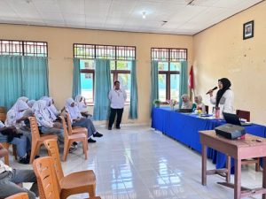 Kegiatan kemudian dilanjutkan oleh Rafikah Maharani yang memaparkan informasi lebih rinci terkait IAIN Sorong, mulai dari fakultas yang tersedia, sarana dan prasarana pendukung perkuliahan, hingga penjelasan detail mengenai program studi serta prospek lulusan di dunia kerja. Penyampaian materi yang informatif ini berhasil meningkatkan antusiasme siswa, terlihat dari ketertarikan dan perhatian mereka selama kegiatan berlangsung.