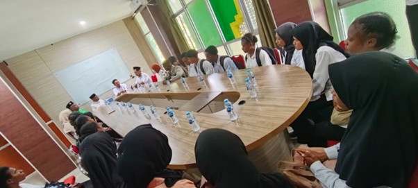 Humas IAIN Sorong – Institut Agama Islam Negeri (IAIN) Sorong menerima 19 mahasiswa baru asal Kabupaten Kaimana yang diantar langsung oleh Ketua Majelis Ulama Indonesia (MUI) Kabupaten Kaimana, Bapak Zein Parissa. Prosesi penyerahan mahasiswa dilakukan secara simbolis di ruang rapat lantai 2 gedung Rektorat IAIN Sorong, Senin , 15/09/2025