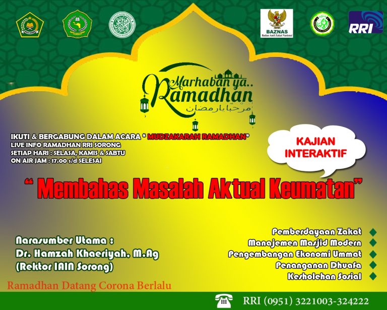 Sorong, iainsorong.ac.id – Rektor Institut Agama Islam Negeri (IAIN) Sorong diminta sebagai narasumber pada acara Kajian Akbar Syawal 1441 H. Kegiatan Kajian Akbar tersebut disekenggarakan oleh Pimpinan Daerah Darud Dakwah Wal-Irsyad (PD-DDI) Kabupaten Wajo, Selasa, 9 Juni 2020, pukul 20.00…