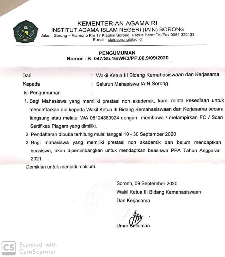 Berikut kami lampirkan pengumuman terbaru tentang layanan digital Perpustakaan IAIN Sorong untuk memenuhi kebutuhan pemustaka akan perpustakaan digital online (e-Resources) seperti jurnal, e-book dan karya referensi online lainnya. Surat edaran dapat diakses di sini.
