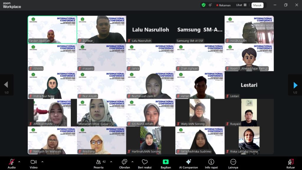 HUMAS IAIN Sorong – Institut Agama Islam Negeri (IAIN) Sorong menggelar International Conference on Contemporary Issues in Social Religious Studies yang menghadirkan para akademisi dan peneliti dari berbagai negara. Peserta konferensi berasal dari Indonesia, Papua Nugini, Brunei Darussalam, Malaysia, Nigeria, Madagaskar, Sudan hingga Swedia. Kegiatan ini menjadi wadah pertukaran gagasan mengenai berbagai persoalan sosial-keagamaan yang berkembang di tengah masyarakat global, khususnya di era digital.