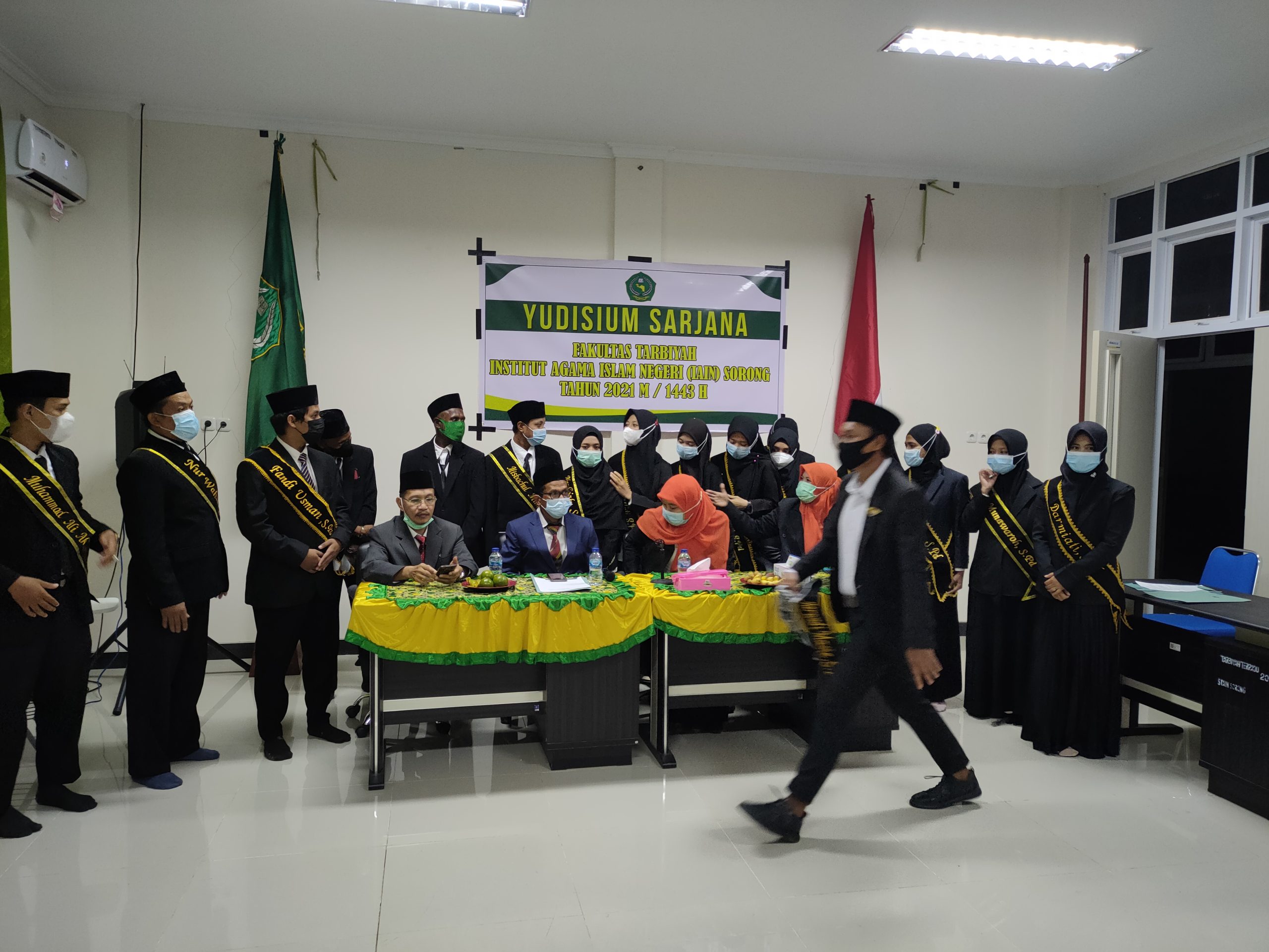 Senin 20 September 2021 berlangsung yudisium sarjana fakultas tarbiyah IAIN Sorong, dihadiri langsung oleh rektor IAIN Sorong yang didampingi oleh dekan dan wakil dekan. Yudisium ini adalah yudisium pertama di tahun 2021, Jumlah total peserta yudisium sebanyak 41 peserta yang terdiri dari 5 mahasiswa dari program studi Tadris bahasa Inggris, 18 dari prodi Pendidikan Guru Madrasah Ibtidaiyah dan 18 dari prodi Pendidikan Agama Islam. Rencananya mahasiswa yang diyudisium ini akan diwisuda pada November 2021. Yudisium ini berlangsung khidmat yang dipimpin langsung oleh dekan fakultas tarbiyah, didampingi wakil dekan dan koordinator program studi.